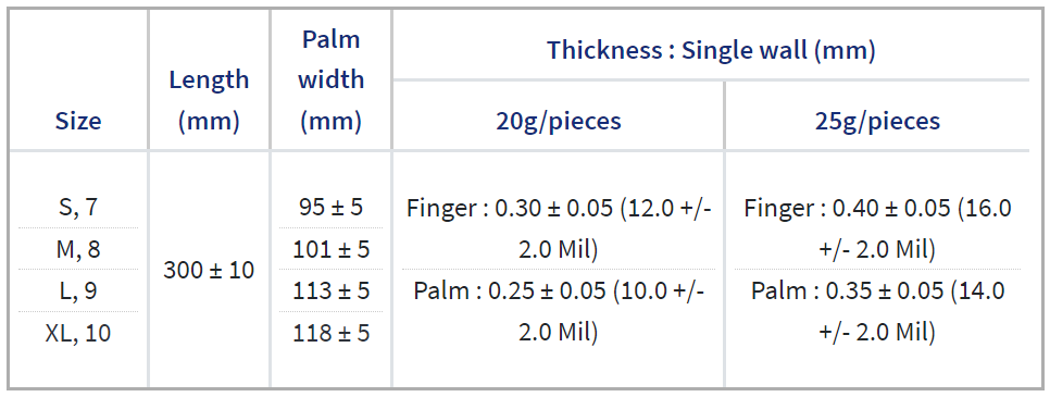 *Size of gloves shall be marked in the check box on the shipping carton with black ink